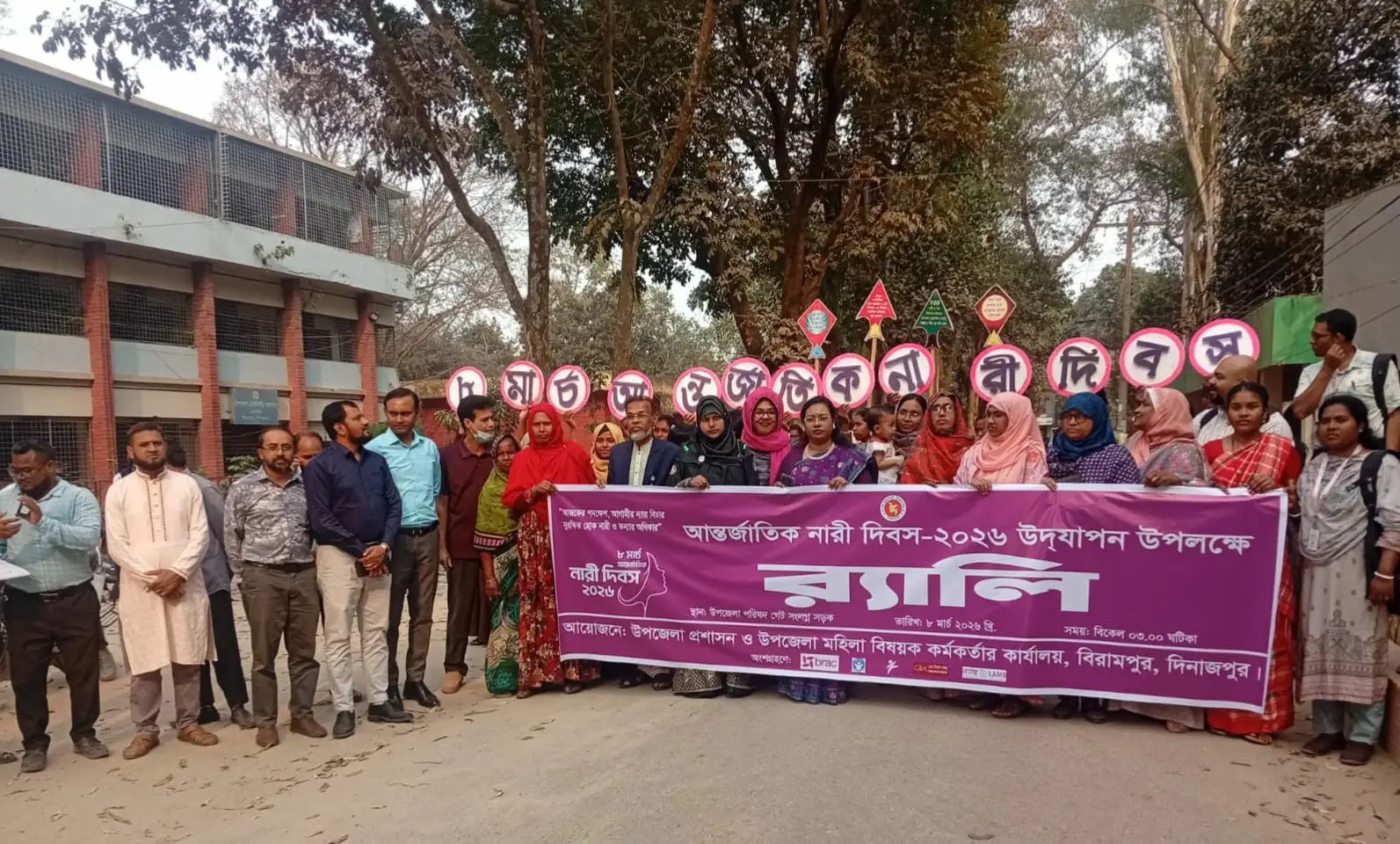 এমডি রেজওয়ান আলী বিরামপুর ( দিনাজপুর) প্রতিনিধি-দিনাজপুরের বিরামপুরে আন্তর্জাতিক নারী দিবস উপলক্ষে বর্ণাঢ্য র্যালি ও আলোচনা সভা অনুষ্ঠিত হয়েছে। নারীর অধিকার, মর্যাদা ও সমঅধিকার প্রতিষ্ঠার আহ্বানে আয়োজিত এ কর্মসূচিতে বিভিন্ন শ্রেণি-পেশার মানুষ অংশগ্রহণ করেন। রোববার (৮ মার্চ) বিকেল ৩টায় বিরামপুর উপজেলা প্রশাসন ও উপজেলা মহিলা বিষয়ক কর্মকর্তার কার্যালয়ের যৌথ আয়োজনে উপজেলা পরিষদ চত্বর থেকে একটি বর্ণাঢ্য র্যালি বের করা হয়। র্যালিটি উপজেলার প্রধান সড়ক প্রদক্ষিণ করে পুনরায় উপজেলা পরিষদে এসে শেষ হয়। এ বছরের আন্তর্জাতিক নারী দিবসের প্রতিপাদ্য ছিল—“আজকের পদক্ষেপ,আগামীর ন্যায়বিচার; সুরক্ষিত হোক নারী ও কন্যার অধিকার।”র্যালিতে সরকারি বেসরকারি প্রতিষ্ঠানের কর্মকর্তা কর্মচারী,বিভিন্ন সামাজিক সংগঠনের প্রতিনিধি,নারী নেত্রী এবং স্থানীয় গণ্যমান্য ব্যক্তিবর্গ অংশগ্রহণ করেন।