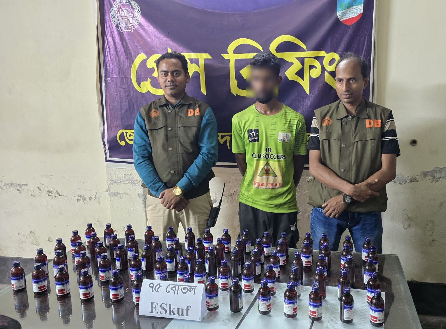 ইং ১০/৩/২০২৬ তারিখ বেলা ১৪.৪৫ ঘটিকার সময় জেলা গোয়েন্দা শাখা ( ডিবি), যশোরের এসআই (নিঃ)/ শিবু মন্ডল সঙ্গীয় অফিসার ও ফোর্সের সমন্বয় একটি চৌকস টিম শার্শা থানাধীন কাশিপুর বাজার সংলগ্ন জনৈক আমিনুল মেম্বার এর ধানী জমির পশ্চিম পার্শ্বে চৌগাছা টু শার্শা গামী পাকা রাস্তার উপর হতে মোঃ মিনহাজ ব্যাপারী (২৩) কে তার হাতে থাকা একটি সাদা রংয়ের প্লাস্টিকের ব্যাগের মধ্যে রক্ষিত ৭৫ (পঁচাত্তর) বোতল অবৈধ মাদকদ্রব্য (ESKUF) সহ গ্রেফতার করে।